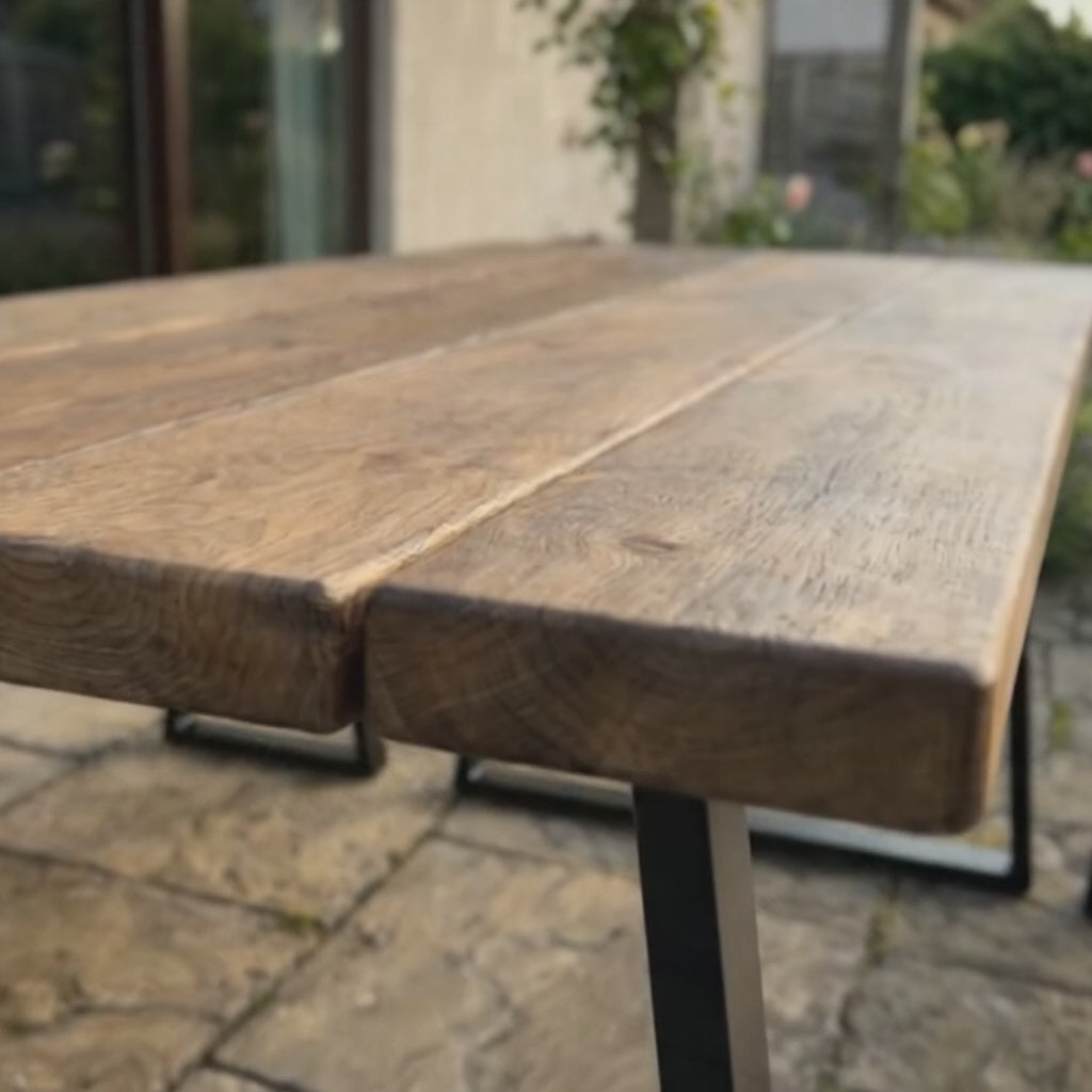 The Sleek & Slender Slatted Outdoor Table is built for stylish and practical outdoor living. Perfect for patios, gardens, terraces, and outdoor dining spaces, it combines a strong handmade steel frame with a solid timber slatted top for a modern look with natural warmth. The slatted design allows natural timber movement through changing weather, helping reduce warping and keeping the table stable for long-term outdoor use.