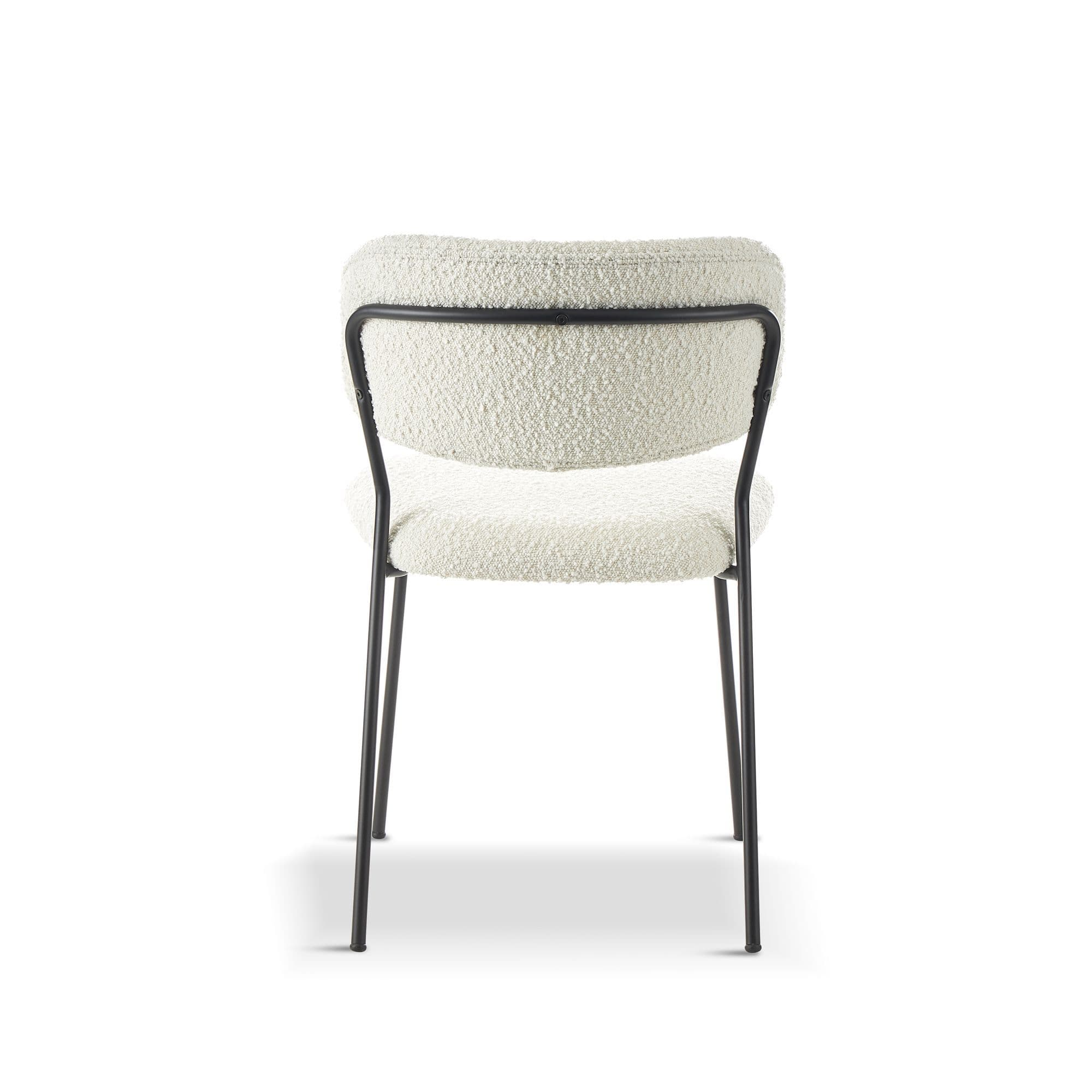 Supported by sleek black steel legs, powder-coated for strength and stability, the Aurion Prestige Chair – White Bouclé (set of 2) adds a contemporary edge to your dining area, home office, or living room. With a height of 80cm and width of 47cm, this chair fits seamlessly into both modern and timeless interiors.