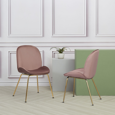 Aurora Luxe Pink Dining Chair with Gold Legs (set of 2) is a designer-inspired dining chair that blends elegance with everyday comfort. The backrest and seat are crafted from two curved shells, creating a smooth silhouette that enhances both support and style. Finished with striking gold legs, this chair adds a touch of luxury to any modern dining space.