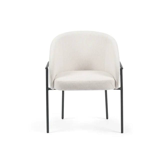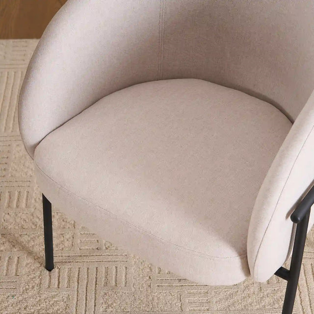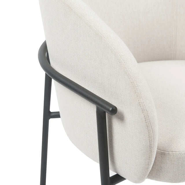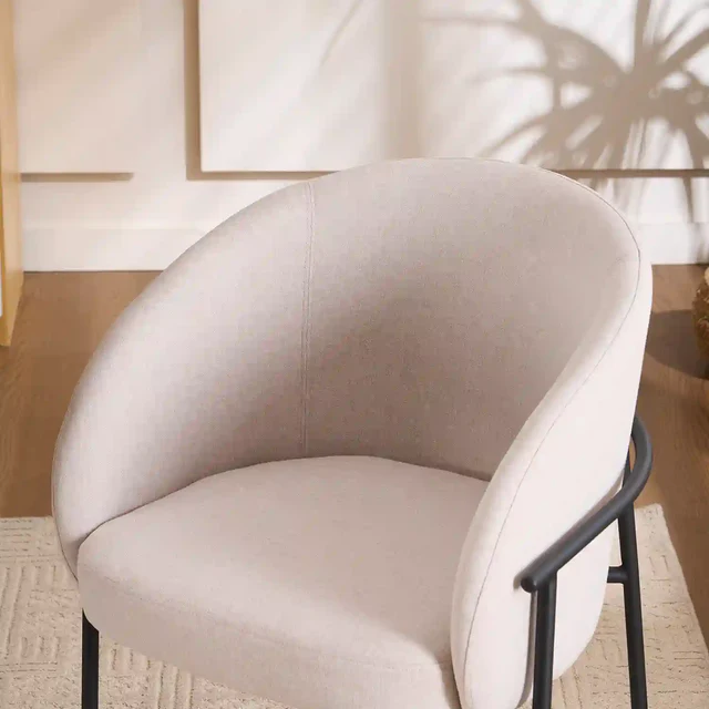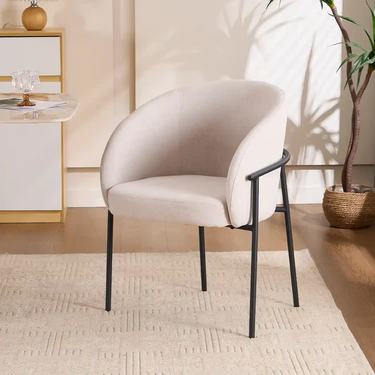 Engineered for both style and stability, the Lumina chair features a durable foam-padded seat, ensuring lasting comfort for all your dinner parties and daily use. The cozy, upholstered outlines are powerfully contrasted by the sleek, minimalist black metal legs and frame, providing a sharp contemporary anchor to the soft beige tone. This striking design contrast makes the Lumina a versatile, statement-making piece of furniture. It is sold as a single unit, allowing you to easily purchase the exact quantity needed for your table. Seeking a different color? The Lumina chair is also available in a Light Grey Fabric.