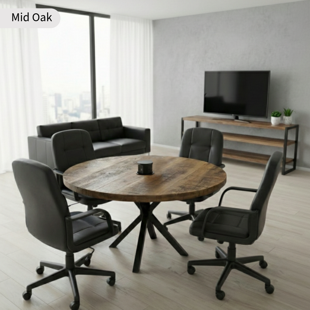 The Rustic Canadian Round Meeting Room Table by TRL Handmade Furniture is crafted from high-quality Canadian timber, showcasing the natural grain and unique texture of the wood. Its circular design encourages open communication and collaboration, making it an excellent choice for meeting rooms, conference areas, or shared workspaces. With its rustic charm and sturdy build, this round meeting table blends timeless craftsmanship with modern functionality, offering a professional yet welcoming centerpiece.