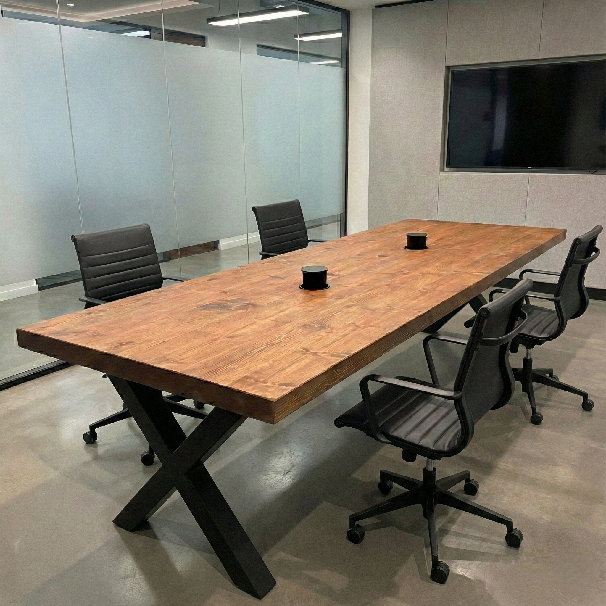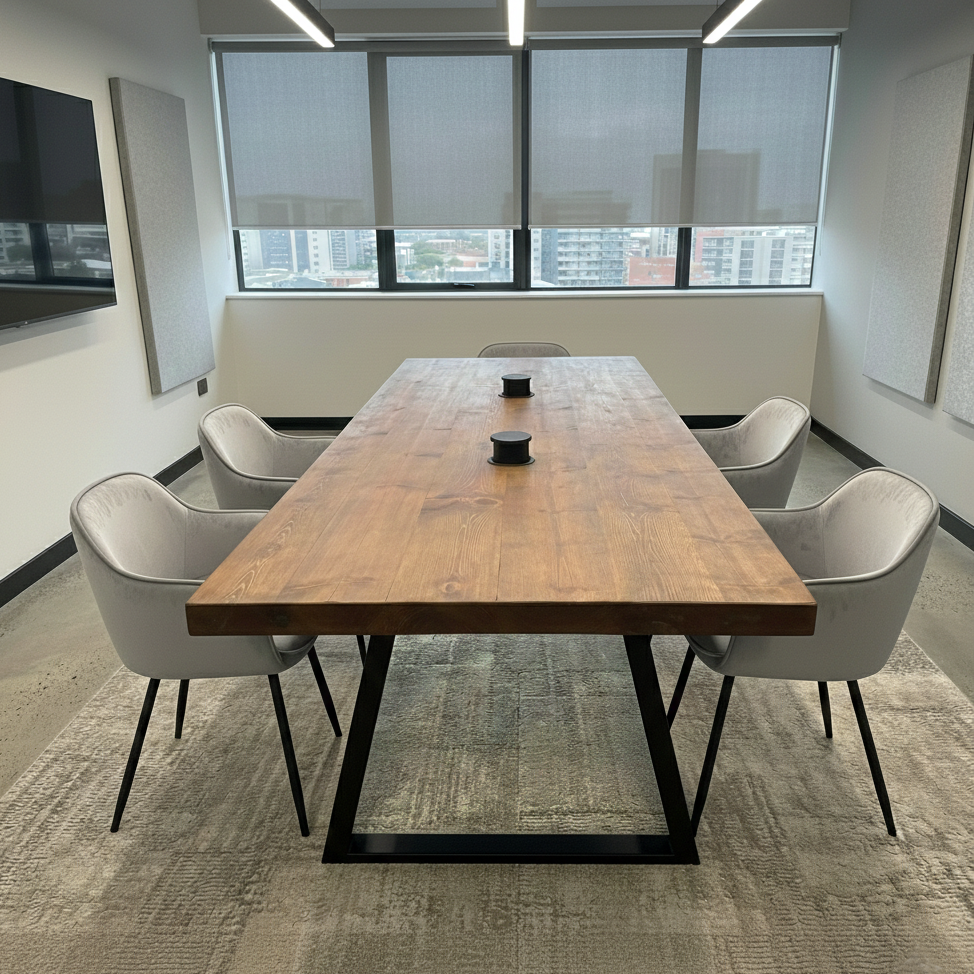 Crafted from premium solid wood, the Chunky Conference Table showcases the durability and elegance that define quality office furniture. Its sturdy build ensures lasting performance, while the natural finish adds warmth and character to any workspace. Perfect for boardrooms or creative environments alike, this table brings people together in style.