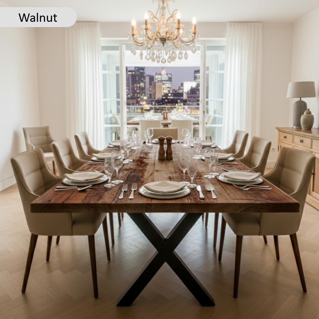 This premium Rustic Industrial Canadian Timber Dining Table from TRL Handmade Furniture is abundant in features, that make every table completely unique and bespoke and is fabulous for any environment that you place it. Rustic Industrial Canadian Timber Dining Table has a more rough, rugged and industrial look than any of our other dining tables and should be your table of choice if you have a large area with direct sunlight such as bi-fold doors and/or roof windows due to its incredible stability. It is twice kiln dried and therefore comes with less moisture which makes it perfect for those warm open spaces.