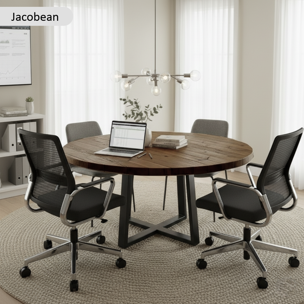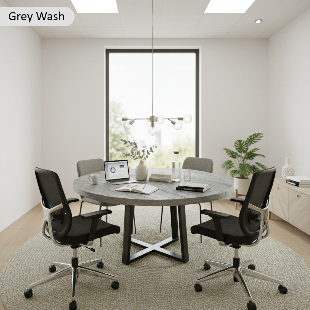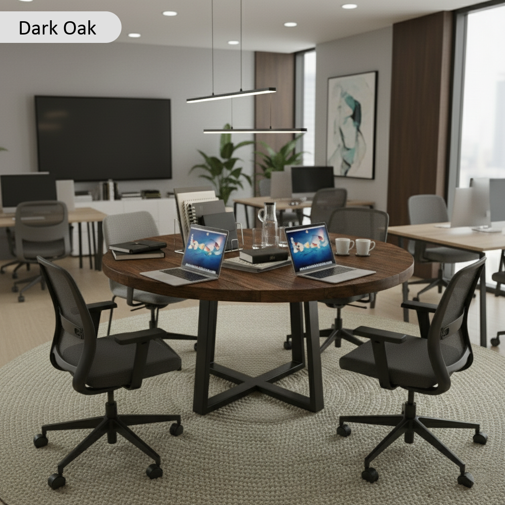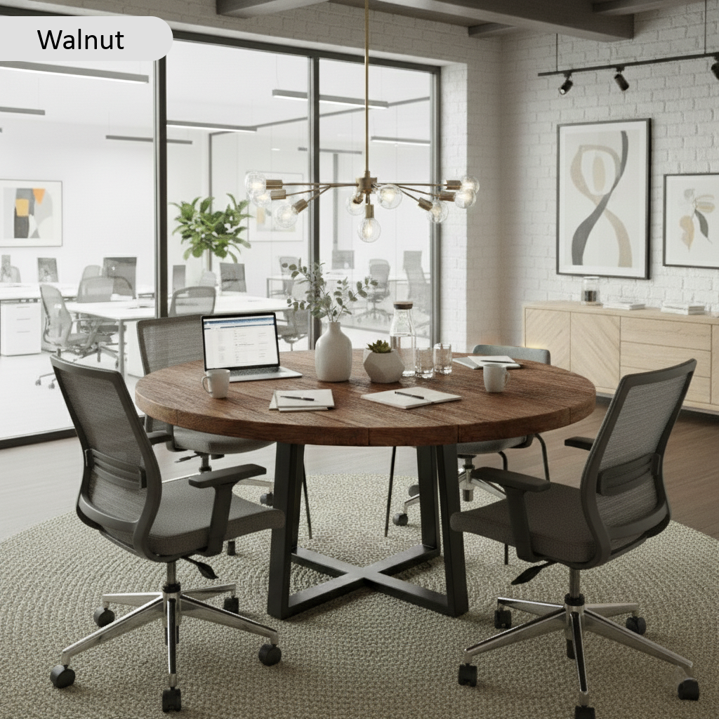 The Reclaimed Round Meeting Room Table by TRL Handmade Furniture is crafted from sustainably sourced reclaimed wood, bringing warmth, character, and unique beauty into any space. Each table highlights its own grain patterns and textures, making it truly one of a kind. With a rounded design that encourages conversation and connection, this round meeting table is perfect for offices, dining areas, or collaborative spaces.