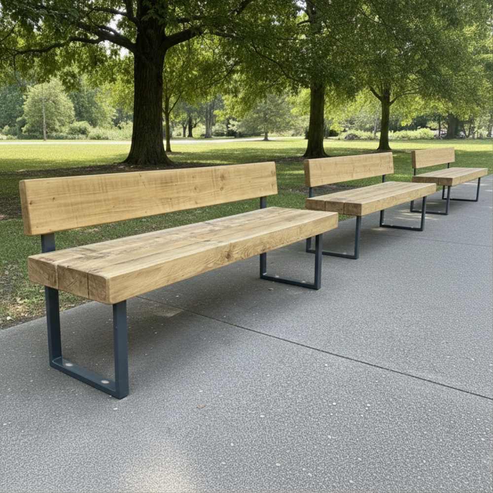 Our Commercial Outdoor Sleeper Bench with Back is crafted from thick 100mm sleeper planks, carefully sanded to offer a smooth yet rustic finish. Each bench is stained and coated with a UV and scratch-resistant finish, ensuring durability and style in any outdoor setting, including commercial spaces such as cafés, pubs, and outdoor venues—making it an ideal piece of commercial furniture.