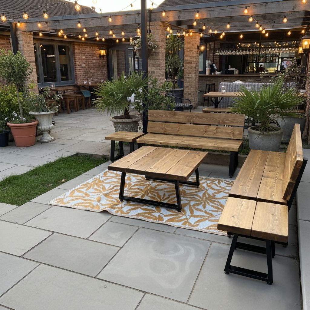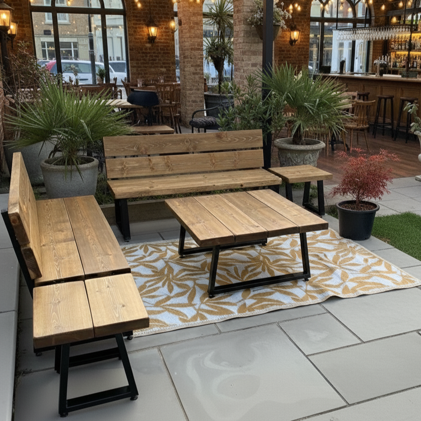 Upgrade your outdoor space with our Commercial Outdoor Lounger Set, designed with wider benches and larger backrests for exceptional comfort and a relaxed seating experience. Each set includes a choice of tables and is available in three size options, making it easy to find the perfect fit for gardens, patios, and outdoor dining areas. Crafted with fully waxed and oiled timber, this lounger set is built to withstand the unpredictable British weather while maintaining its natural beauty and long-term durability.