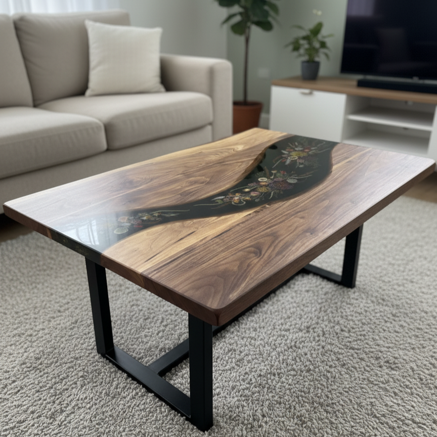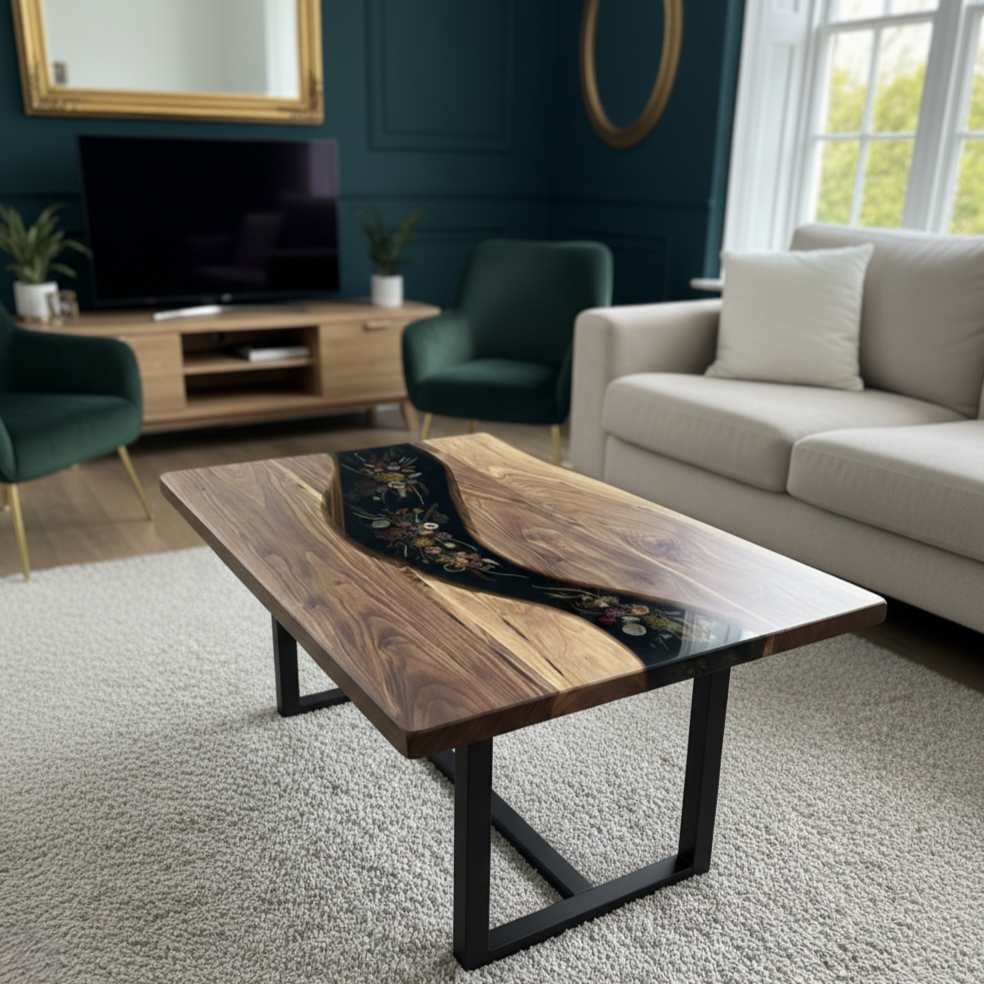 Bring timeless charm and modern artistry into your living space with the Coffee Resin Table from TRL Handmade Furniture. Each piece is carefully handcrafted, blending premium wood and crystal-clear resin to create a stunning centrepiece that’s both functional and eye-catching. Perfect as a coffee table for your living room, this table showcases natural wood grain patterns enhanced by the smooth, glossy resin finish, making it a true conversation starter and a reflection of fine craftsmanship.